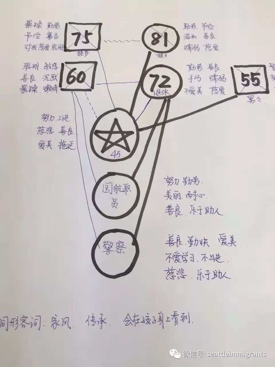 昨天是我的第三次专业课,课上Grace聂老师指导我们学员们描绘各自的“原生家庭图”,把自己带回到18岁以前,回溯自己的原生家庭。这是一堂直击内心触及灵魂的课程,我们所有人,包括Laura会长都在聂老师的引领下,卸下我们当今拥有的一切,回望来路,我们为什么是今天这个样子,十八岁之前,父母到底在我们的心目中是怎样的形象,父母的互动模式对于我们的性格形成有着怎样的影响?我为什么会选择了Ta?